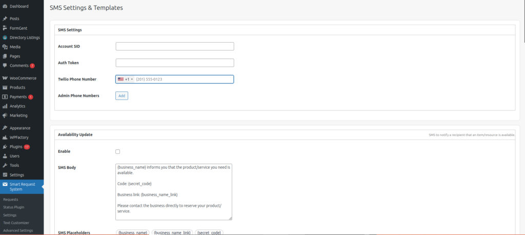 • In the WordPress admin sidebar, navigate to Smart Request System.